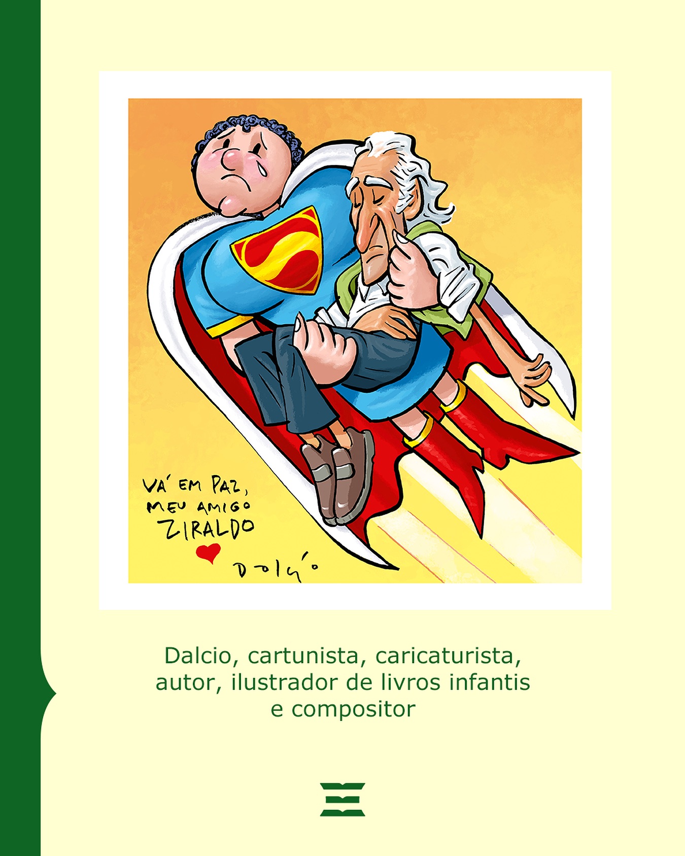 Ziraldo mostrando sua autocaricatura, Maurício de Sousa desenhando em um vidro sobre si mesmo e Paulo Caruso brincando de desenho e música, Jaguar, que completou 92 anos, com uma lupa mostrando seu olhar profundo sobre a vida brasileira; Angeli e seu olhar provocador que no papel fez milhões de fãs; Laerte como uma mulher desenhada se vendo real no espelho; entre outros.